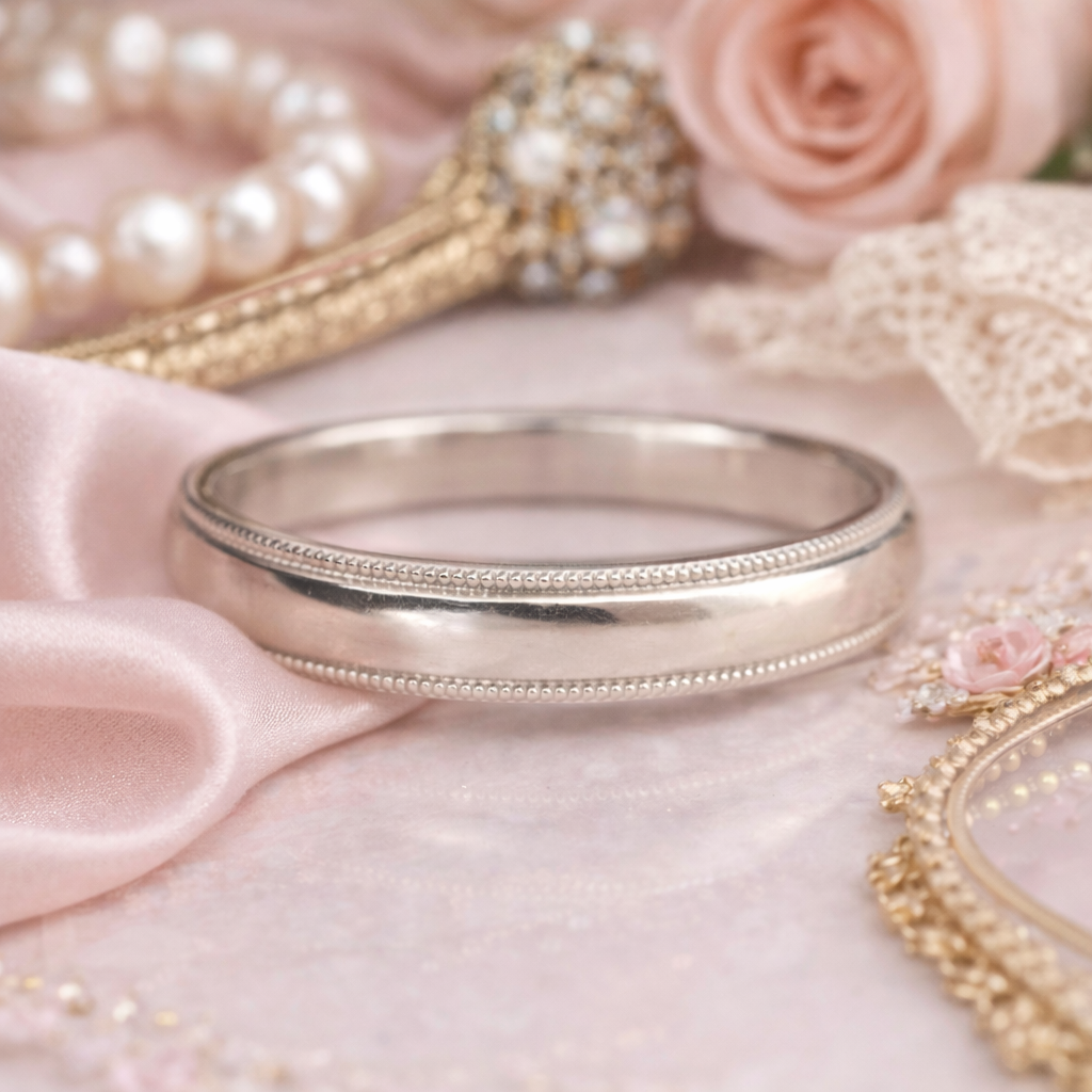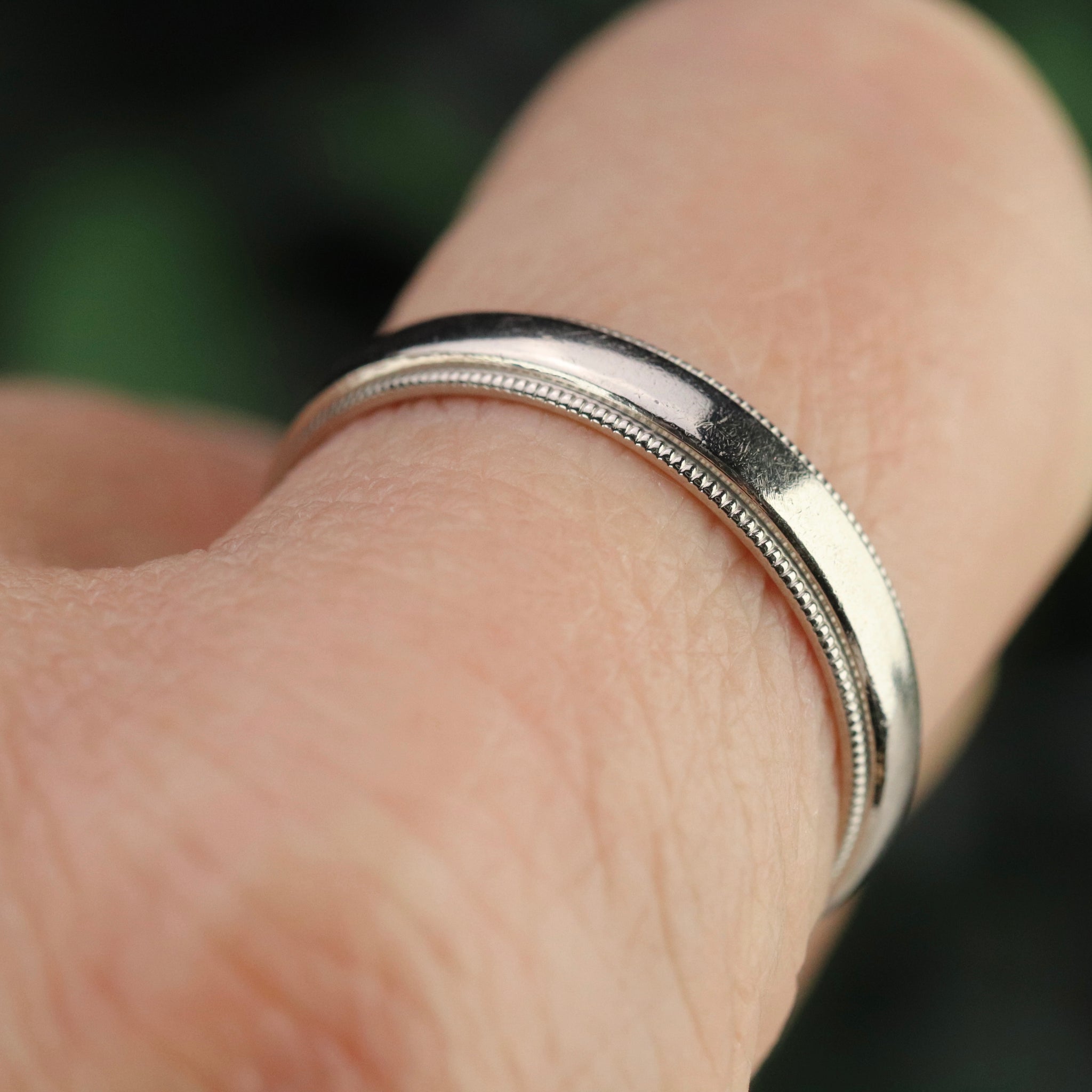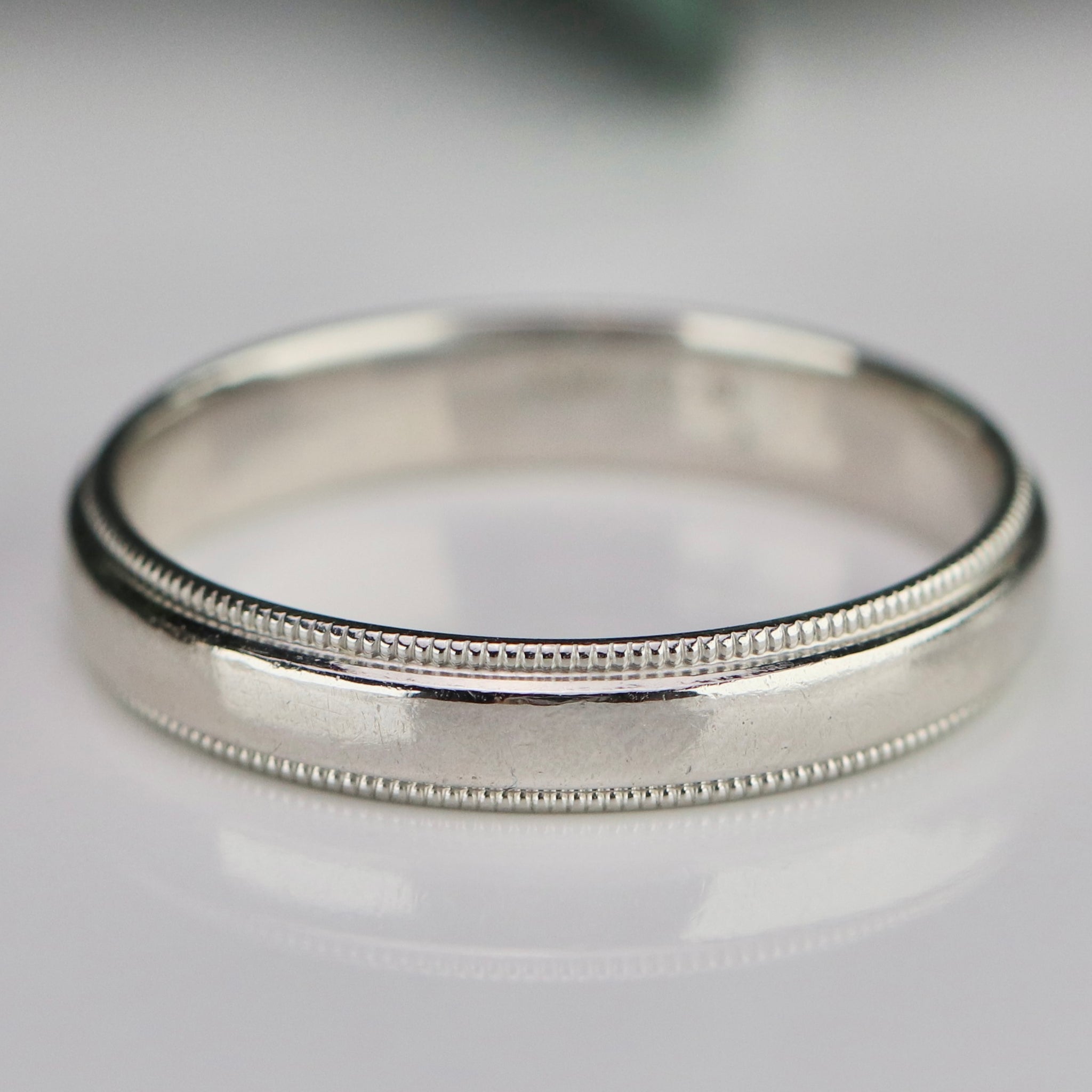 Estate solid platinum milgrain band.  Classic style with milgrain to both sides.  4mm wide.  In very good condition.