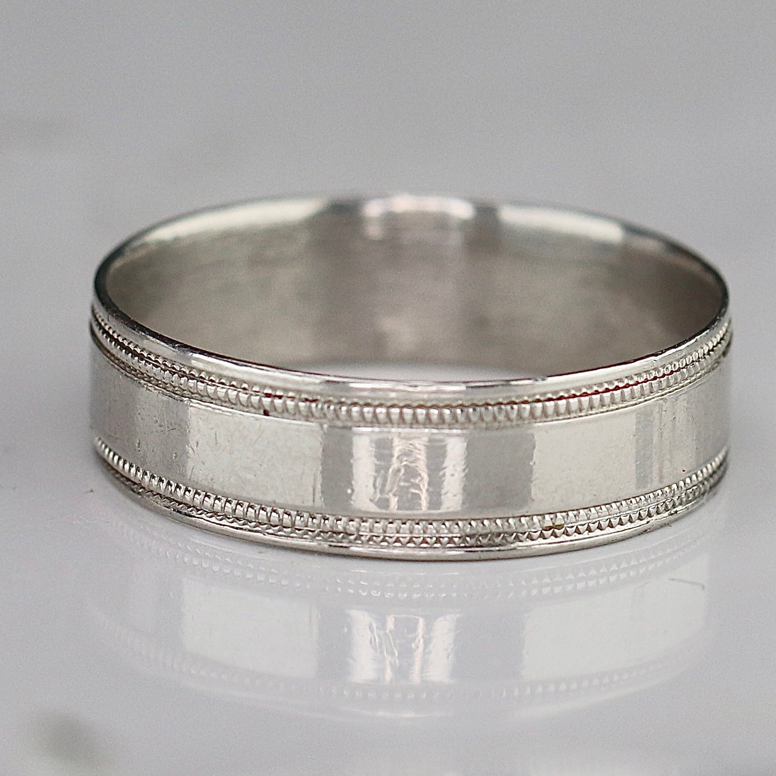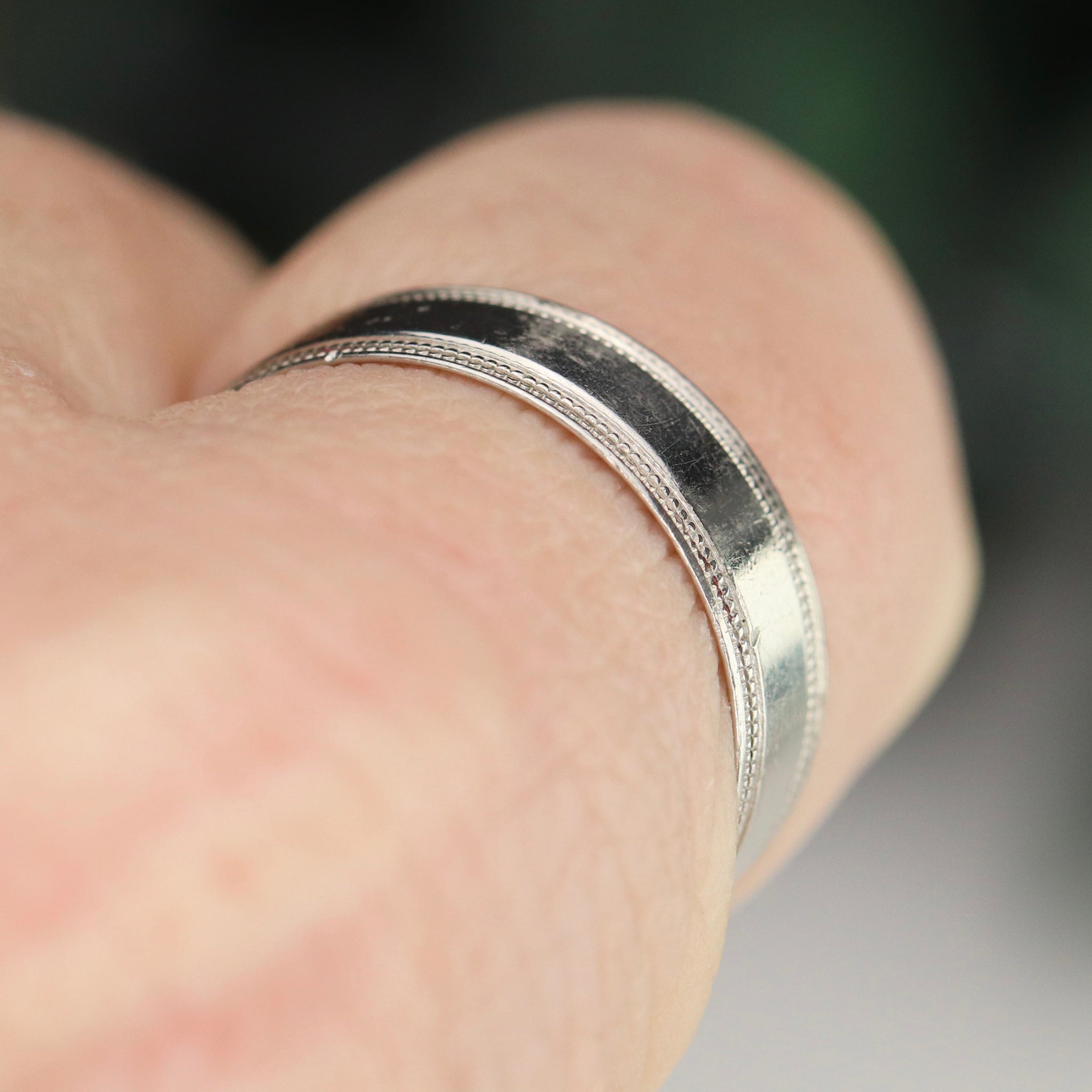Estate solid platinum milgrain band.  Classic style with milgrain to both sides.  6mm wide.  In good condition.