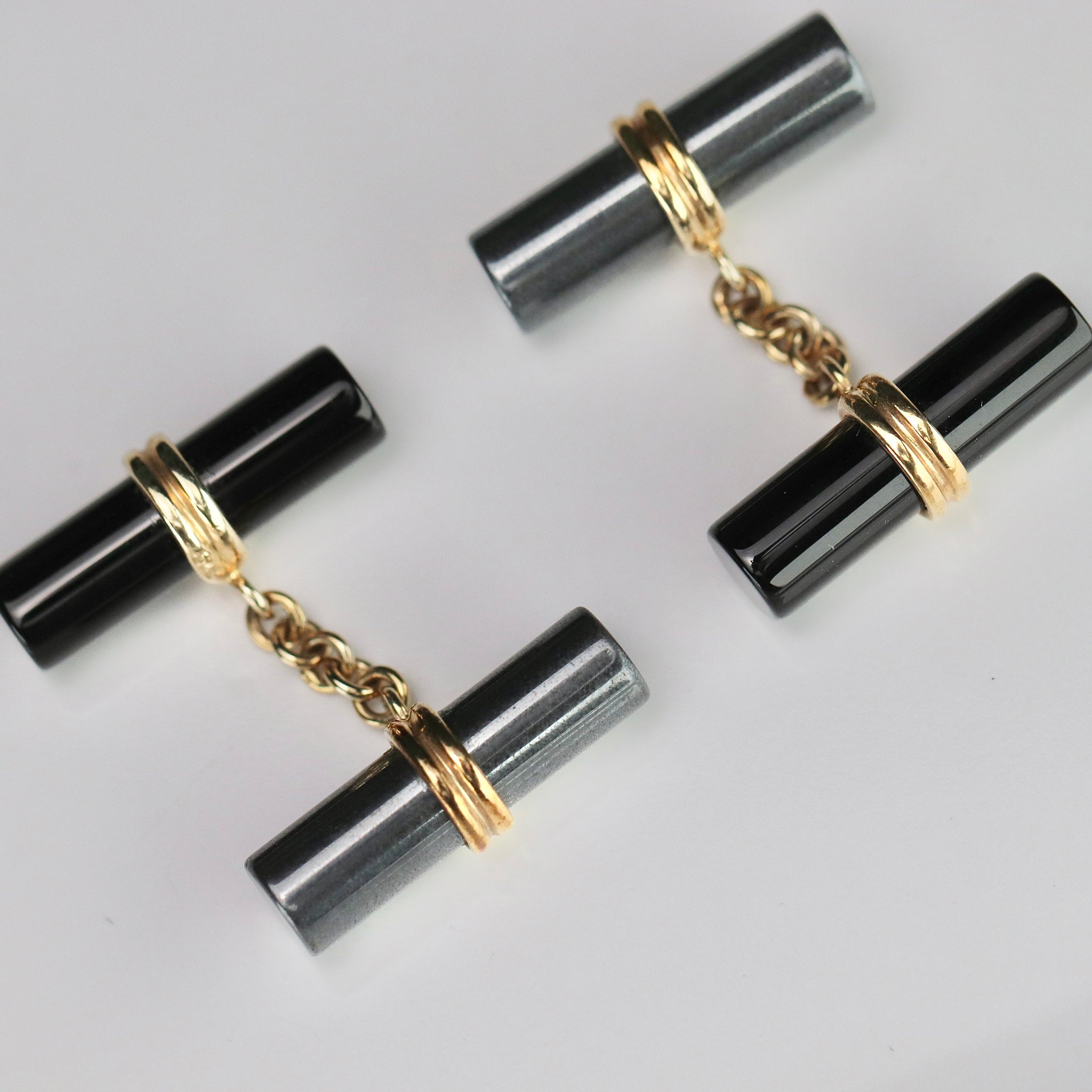 Estate vintage onyx & hematite cufflinks in yellow gold