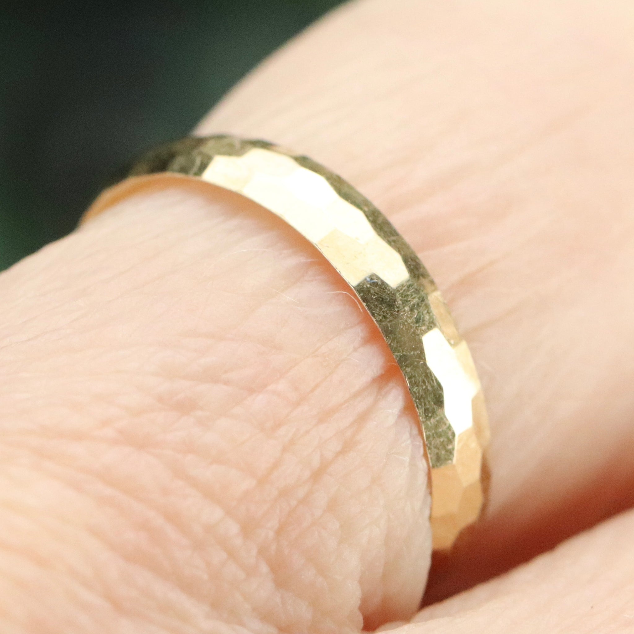 Sweet and simple faceted gold band in 14k yellow gold. Lightweight and low profile - easy to wear! In good condition.