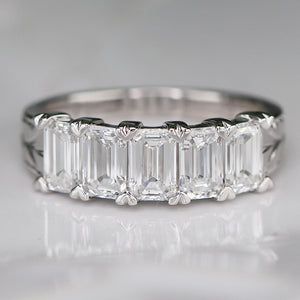 The Anais - Hand engraved Lab grown 2.25ctw 5 stone emerald cut diamond band ring in 14k white gold