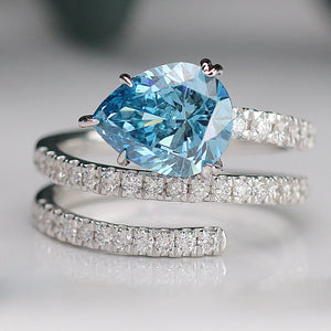 2.50ct Blue pear shaped lab grown diamond ring in 14k white gold
