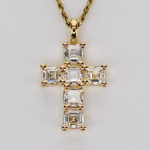 2ctw Asscher shaped lab grown diamond cross pendant in 14k yellow gold