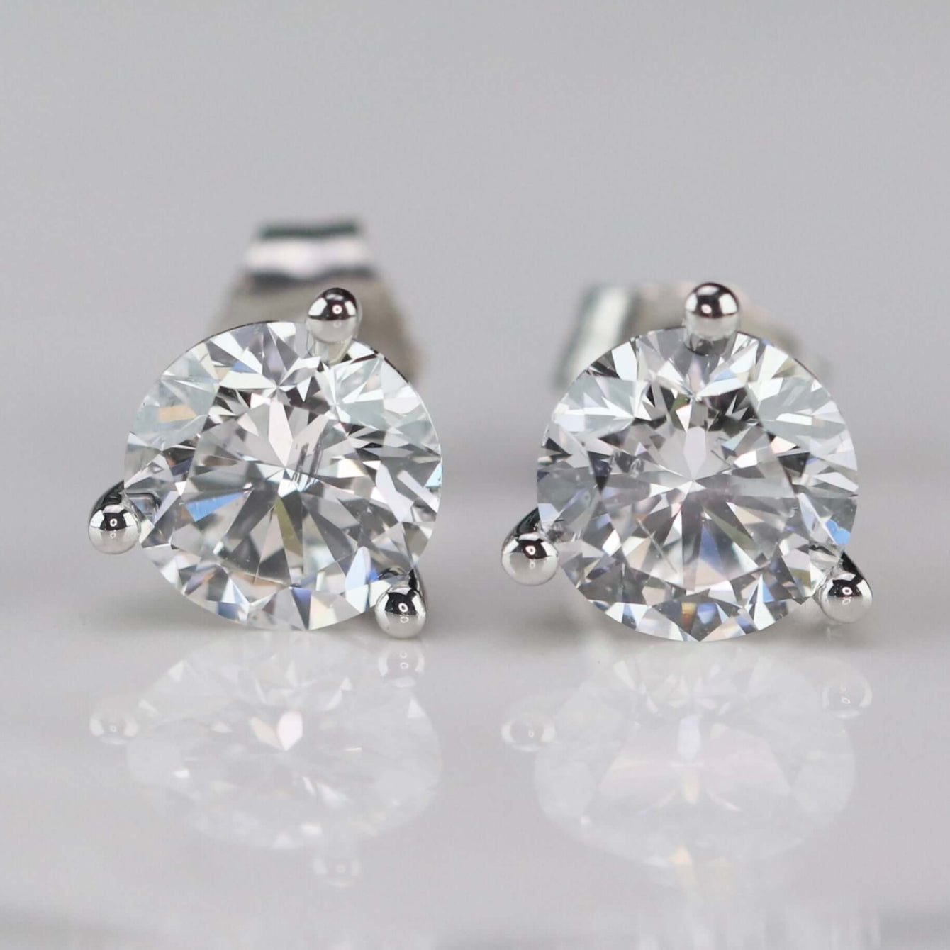 1ctw lab grown diamond studs in your choice of martini (may be 3 or 4 prong depending on availability) or 4 prong standard basket setting (this style may have screwbacks) in 14k white or yellow gold.  Diamond weight is approx 1ctw F-G color, minimum of SI clarity.   New and unworn.