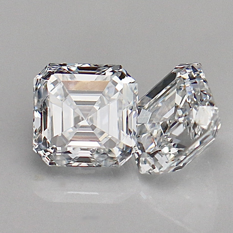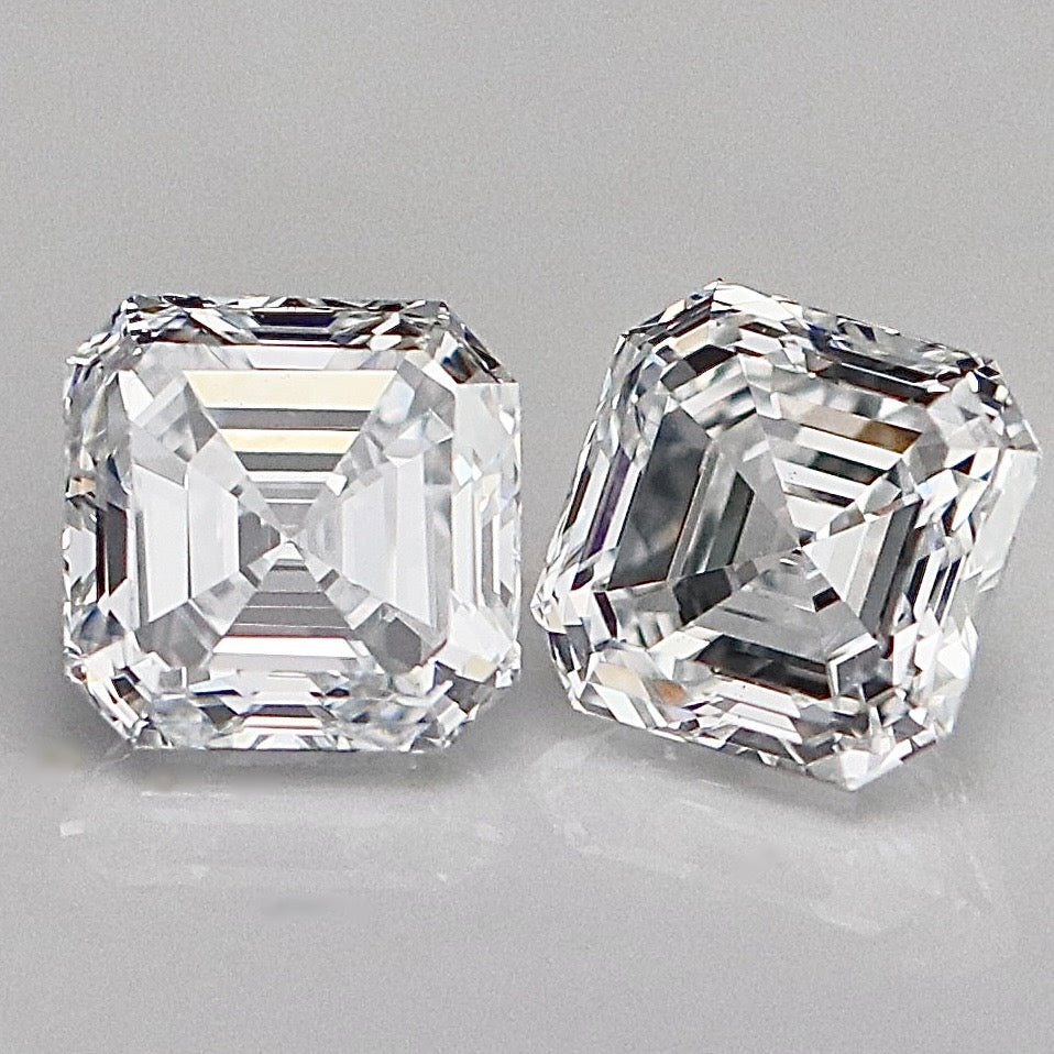 2.02ctw of matched asscher cut lab grown diamonds E/VS1. Both are 5.55mm square. Beautiful stones. Can be supplied loose or we can work with you to set them as you wish.